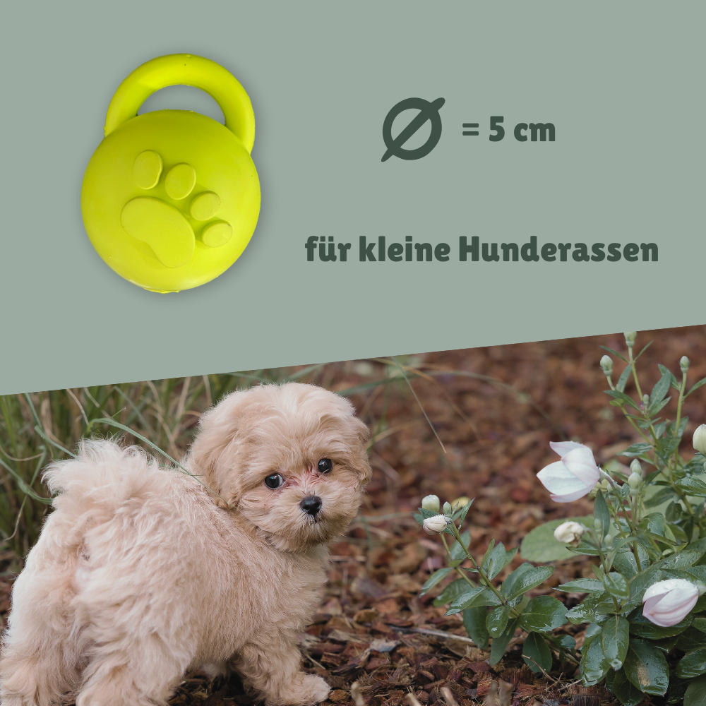 Lass deinen Hund stundenlang mit dem Spielball Pfötchen aus 100 % Naturkautschuk spielen! Dieses BPA-freie Hundespielzeug bietet nicht nur sichere und gesunde Unterhaltung, sondern hilft auch bei der Zahnreinigung und sorgt für sanfte Linderung beim Zahnen.